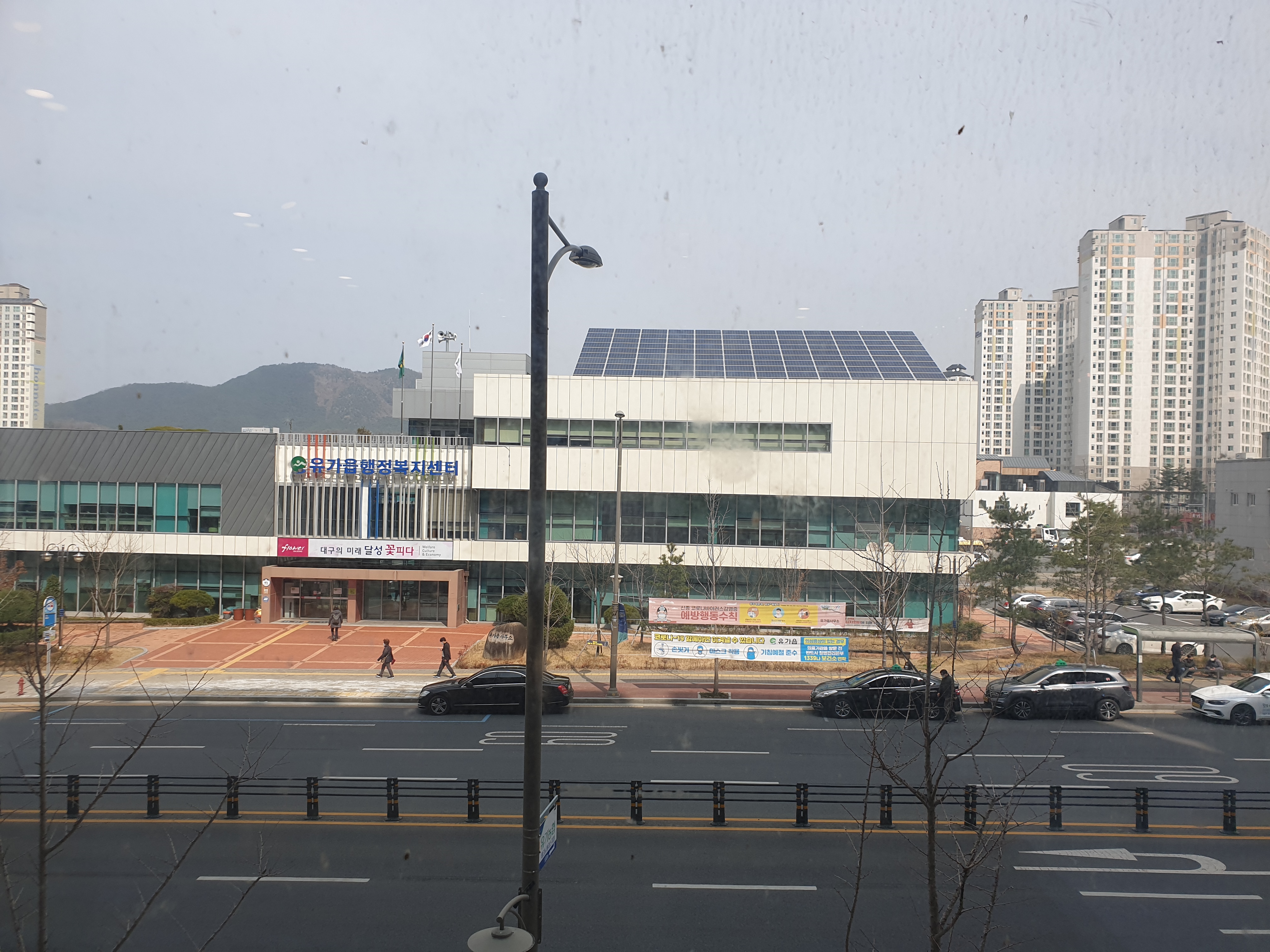 평일 점심 시간에다가 코로나19 영향인지 손님이 없어서 따스한 볕이 드는 창가 명당에 자리 잡았는데 바로 맞은편에 유가읍 행정복지센터가 있어요 평상시에야 관심 없지만 이런 창가 자리에 앉으면 괜히 자동차랑 사람들 지나다니는 거 구경하게 되더라구요^^ 창가 자리 강추입니다~~