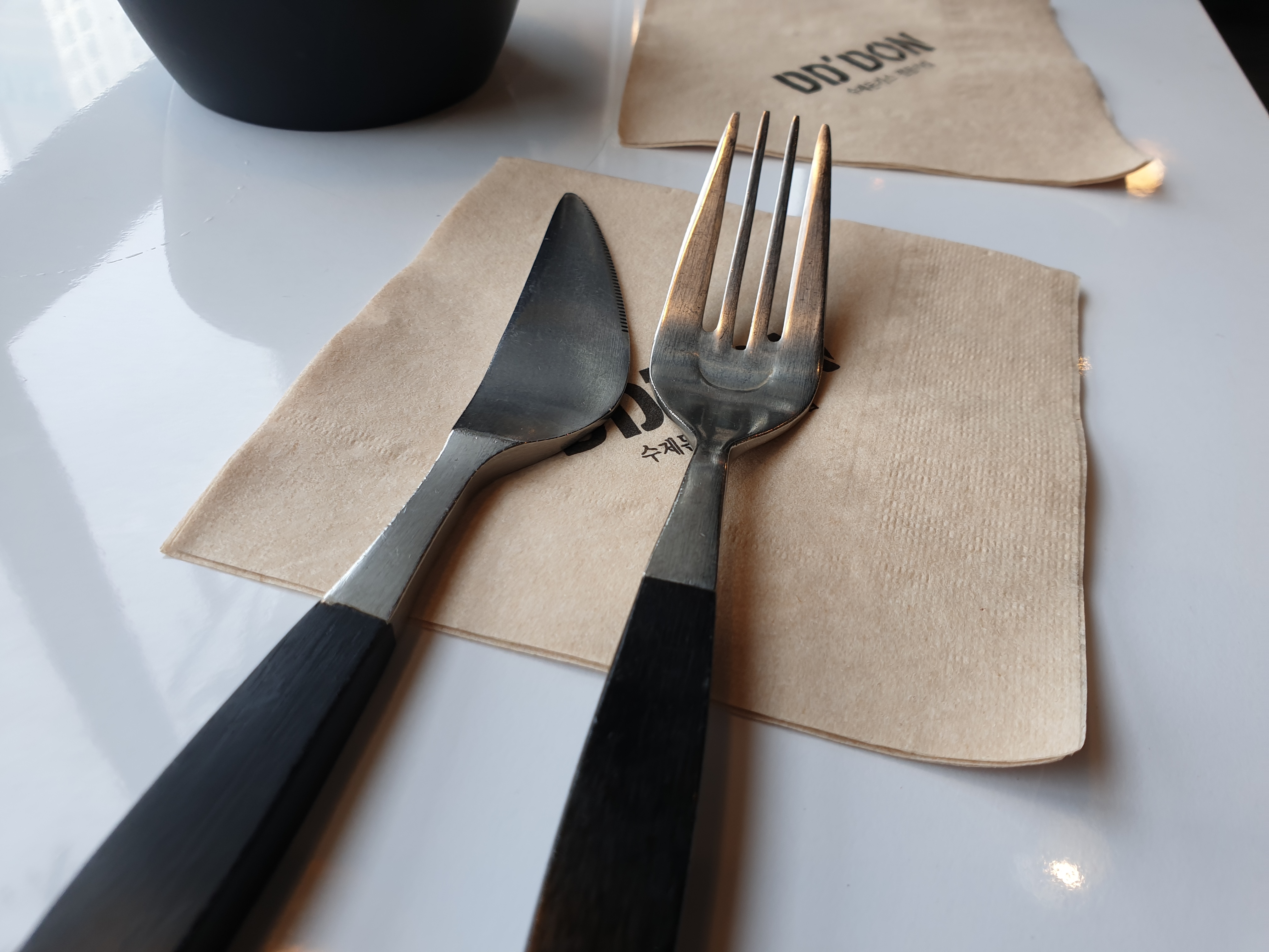 돈가스가 나오기 전인데 뭣이 그리 바쁜지 말이에요 서둘러 포그와 나이프를 셋팅하고 기다렸어요. ㅋㅋㅋ 점심시간이라 배가 좀 고팠던 탓이기도 하겠죠?ㅋㅋㅋㅋ