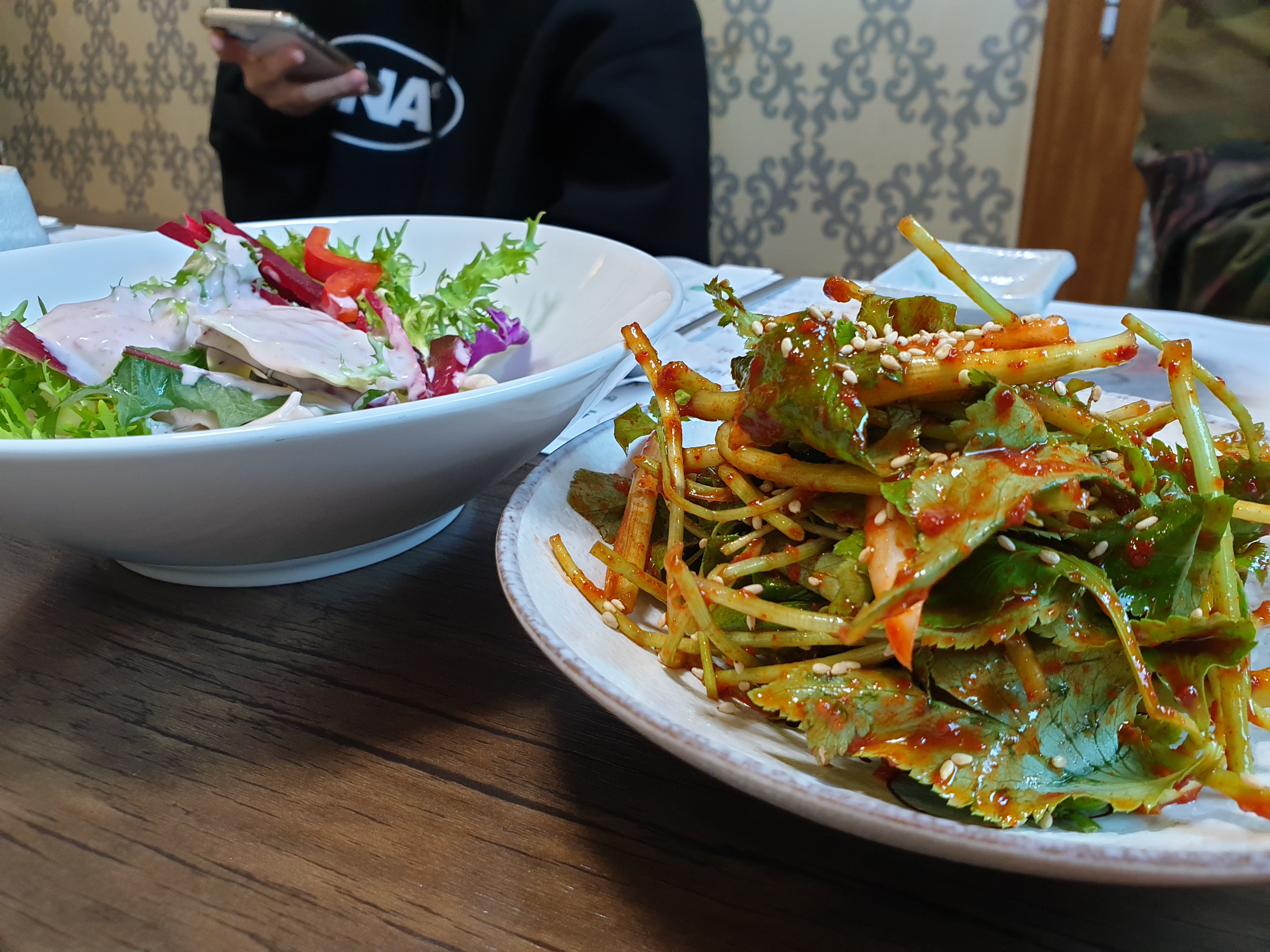 참나물무침은 참나물 본연의 쌉싸름함에 새콤 매콤한 소스를 가볍게 무쳐내어 한방백숙과 상호 조합이 너무나 좋았구요 마늘장아찌는 아삭한 식감에 새콤한 맛이 좋았어요 마늘 특유의 매운 맛은 거의 느낄 수가 없어서 더 좋았습니다.