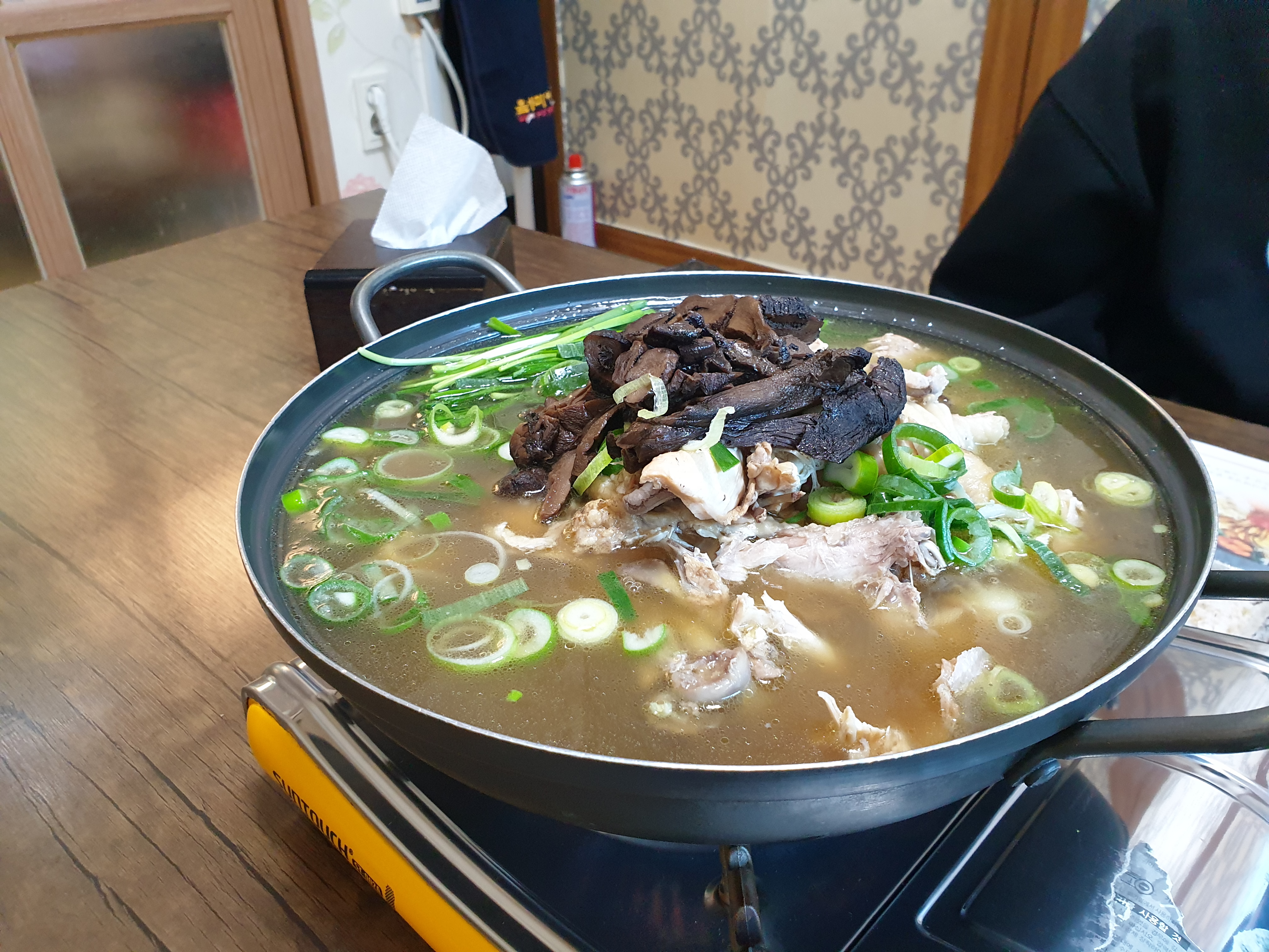 잠시 후 드디어 기다리고 기다리던 능이버섯한방백숙이 들어 왔습니다. ㅍㅎㅎㅎㅎ