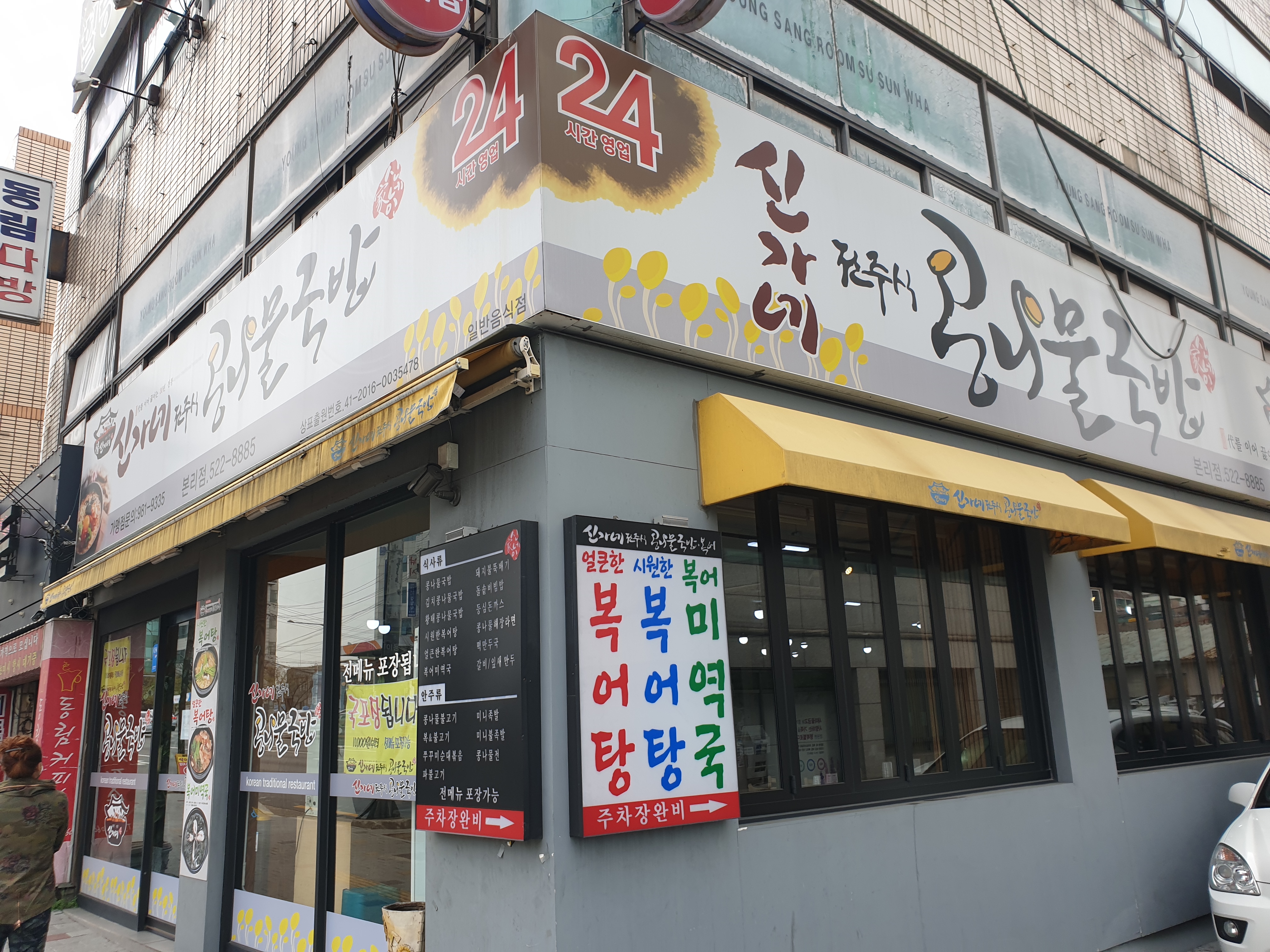 서비스센터에서 가까운 거리에 아침식사 하기 딱 좋은 음식점이 눈에 띄였는데 불금의 여파로 지친 속을 달려 줄 겸 해서 신가네 전주식 콩나물국밥집으로 고고씽~~ 24시간 영업하네요.