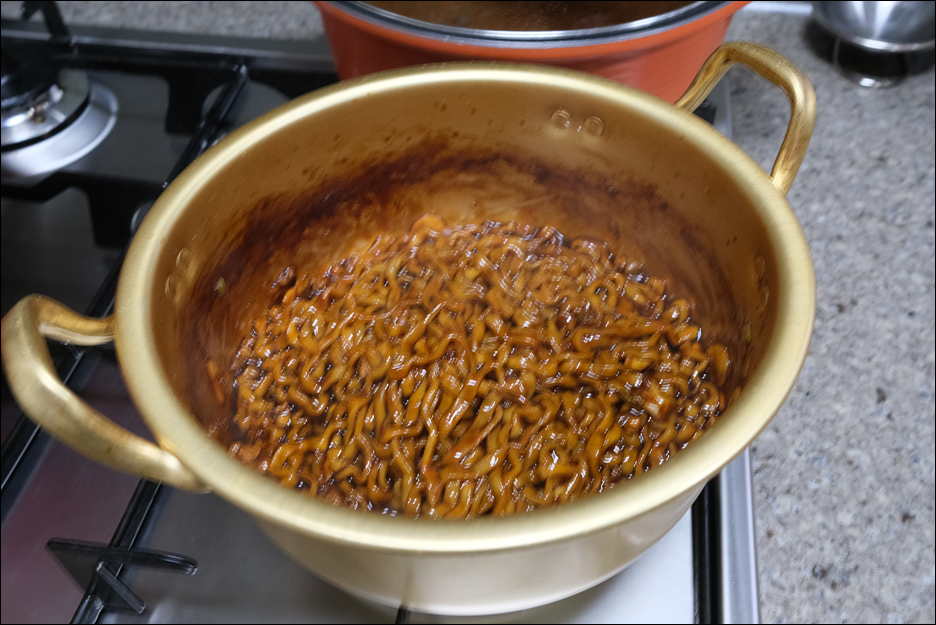 2. 면을 넣고 5분간 더 끓임.