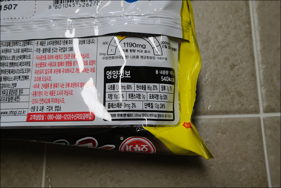 열량 540kcal. 라면이 이정도는 되야 먹을만 하지 암~~