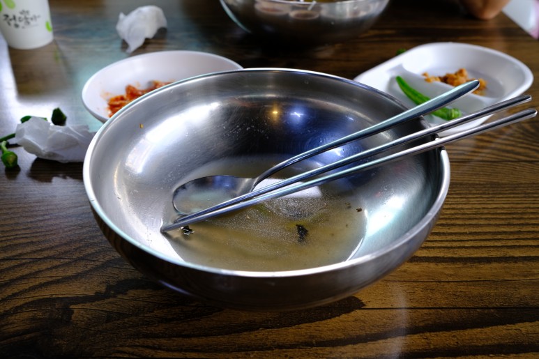 육수는 전형적 멸치육수. 건더기 하나 없이 깔끔.