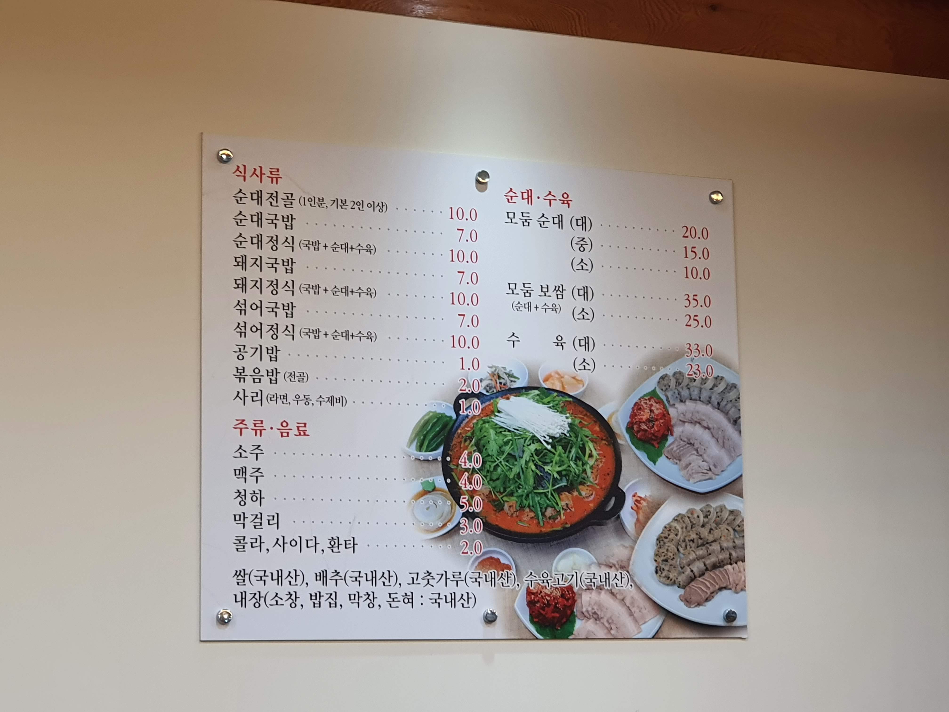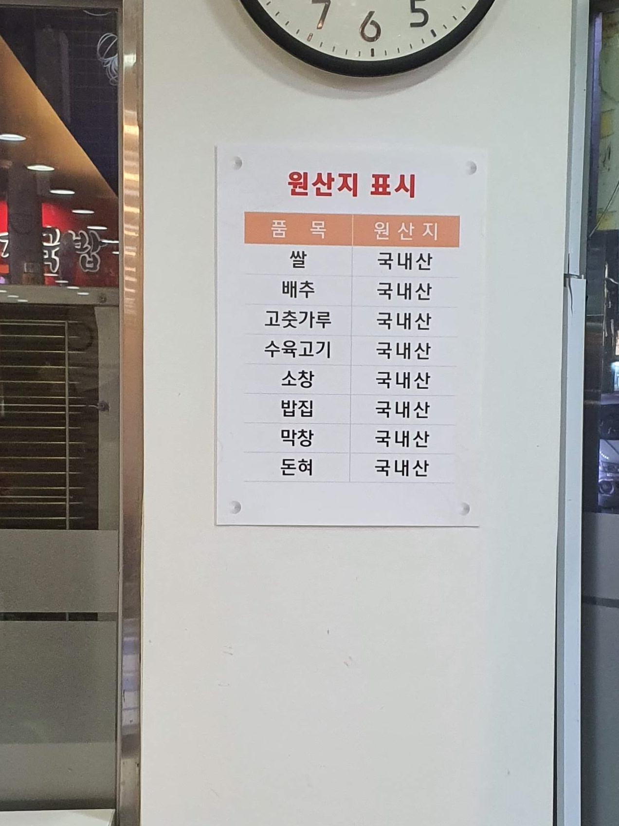 계산 카운터에서 본 원산지 표시.. 왠걸 올 국내산!! ㅎ 또 감사하네 그려^^ 사장님 복 받으실껴~^^ 부모님 모시고 다시 방문하고 싶은 동네맛집 상인동 신재균의 진짜순대!!