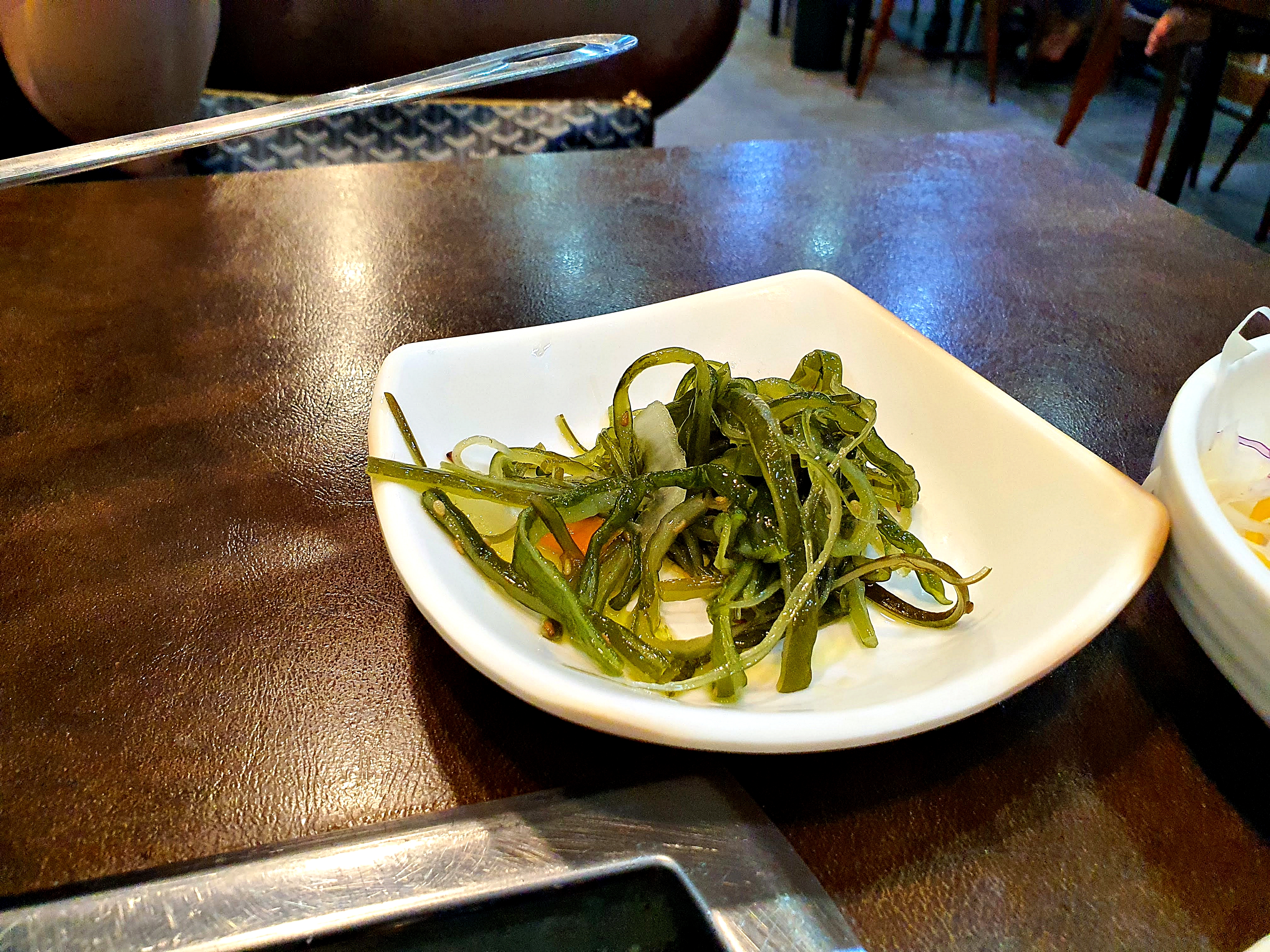 전골 끓을 동안 아까 못한 젓가락질 미역무침부터 시작..
