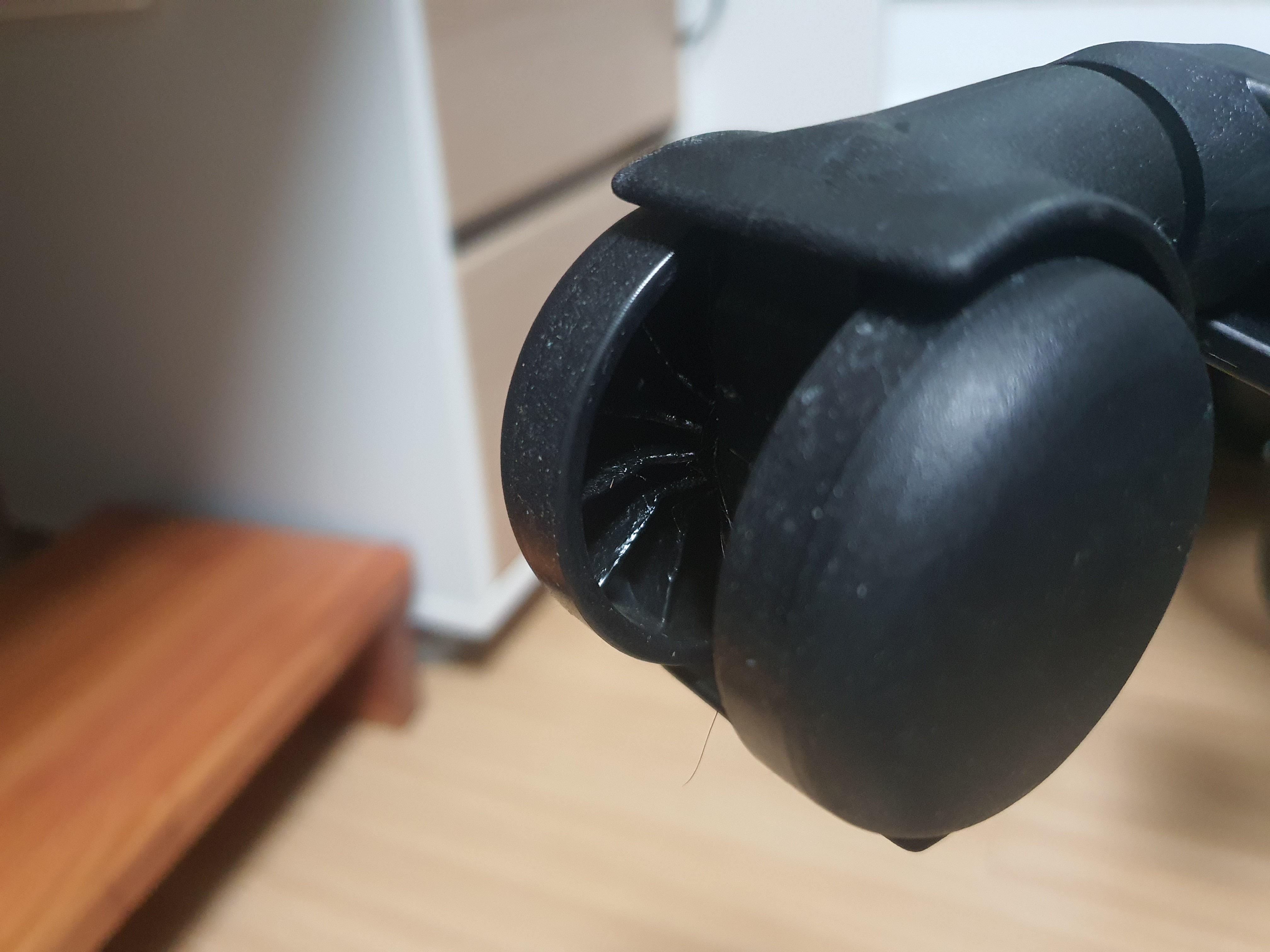 한 1년 반전 부터인가?.. 의자 바퀴에서 검은색 아스팔트 찌꺼기 같은 물질이 계속 묻어나와 바퀴부분과 방바닥에 검은 찌꺼기가 계속 묻어나와 정기적으로 청소해야 하는 상황이 발생했고 시디즈 A/S센터에 전화해보니 A/S기간도 지났고 오래 쓰면 그리된다며 교체 밖에 방법이 없다 하는데 좀 당황스러웠지만 어쩔 수 없다 하니 교체할 수 밖에 ㅠㅠ