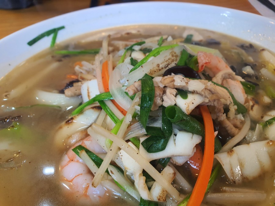 하얀짬뽕을 테이블에 올려놓았을 때 첫 인상이 아따 양 많네 푸짐하네 였는데 가감 없이 정말 많은 양이었고 왠만한 보통의 남성도 완뽕하기 힘들 정도의 양인데 바로 이것이 대가웍 하얀짬뽕의 단점을 눈 씻고 찾아 보면 나오는 단점이라 할 수 있겠다