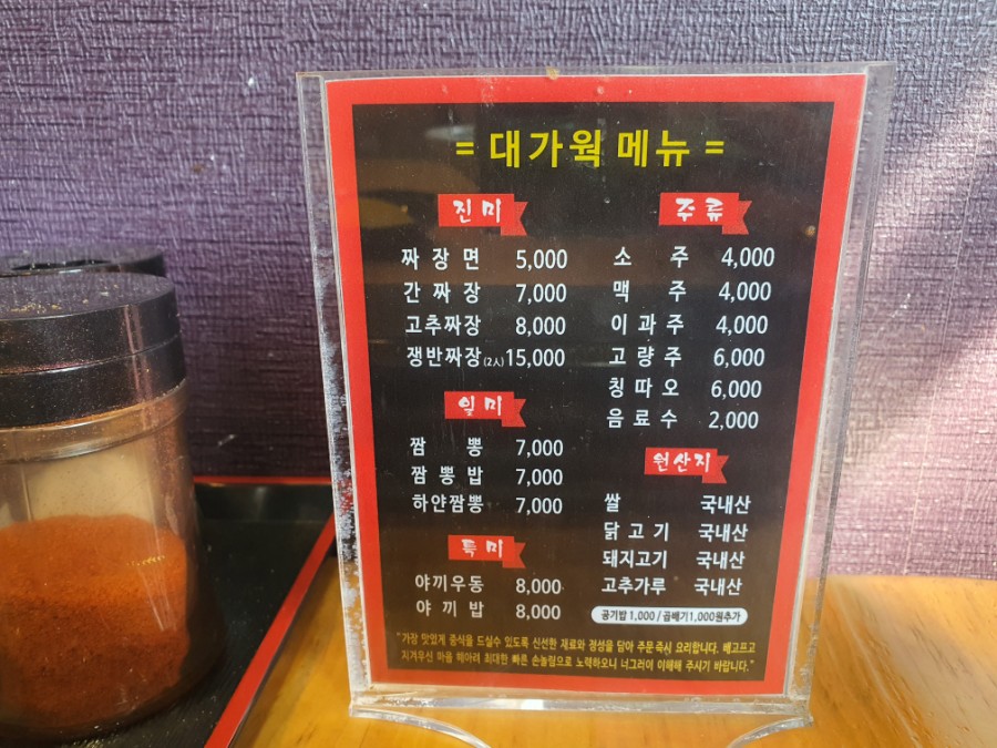 어째어째 평일 쉬는 날이 내게도 찾아 와서 기쁜 마음으로 집사람과 쫑알이와 함께 짜장면 짬뽕 야끼우동 맛집 대가웍 오픈 시간인 10시 30분에 맞추기 위해 쉬는 날 아침부터 바쁘게 설쳐되었고 10시 50분경 도착했는데 벌써 대가웍 가게 앞과 도로에 꽉 들어차게 주차되어 차량을 보고 역시 맛집이네 하며 설마 자리 있겠지 하고 들어가 보았다