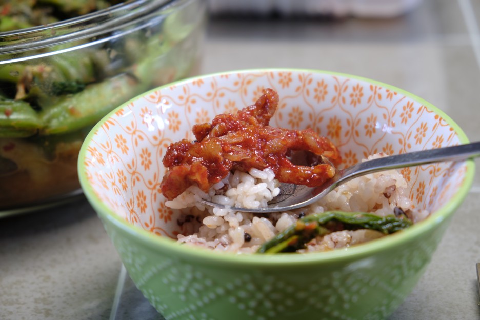 집에 돌아와 지인이 직접 담궈 주신 갓김치와 함께 오후 늦점을 시작했다