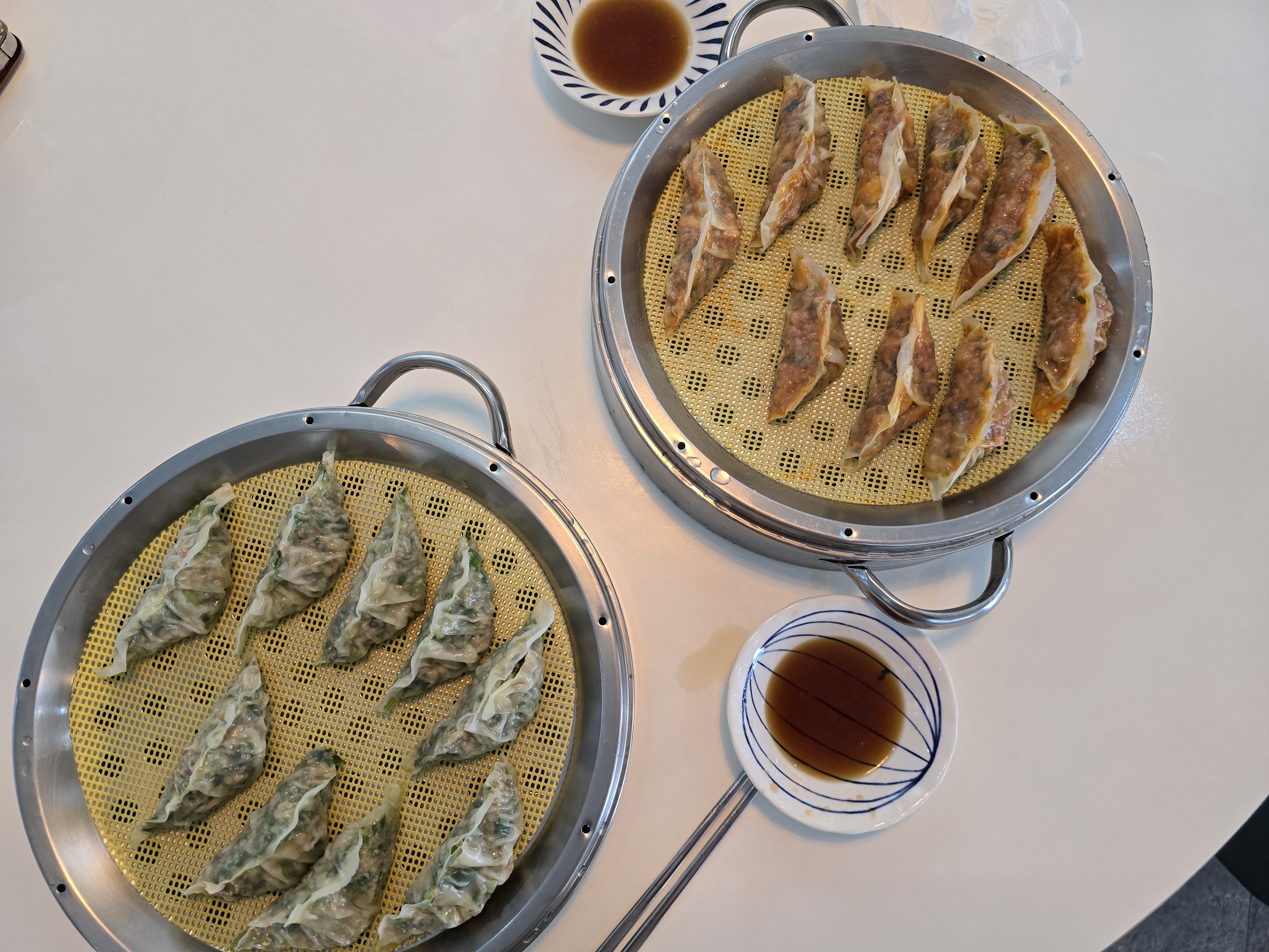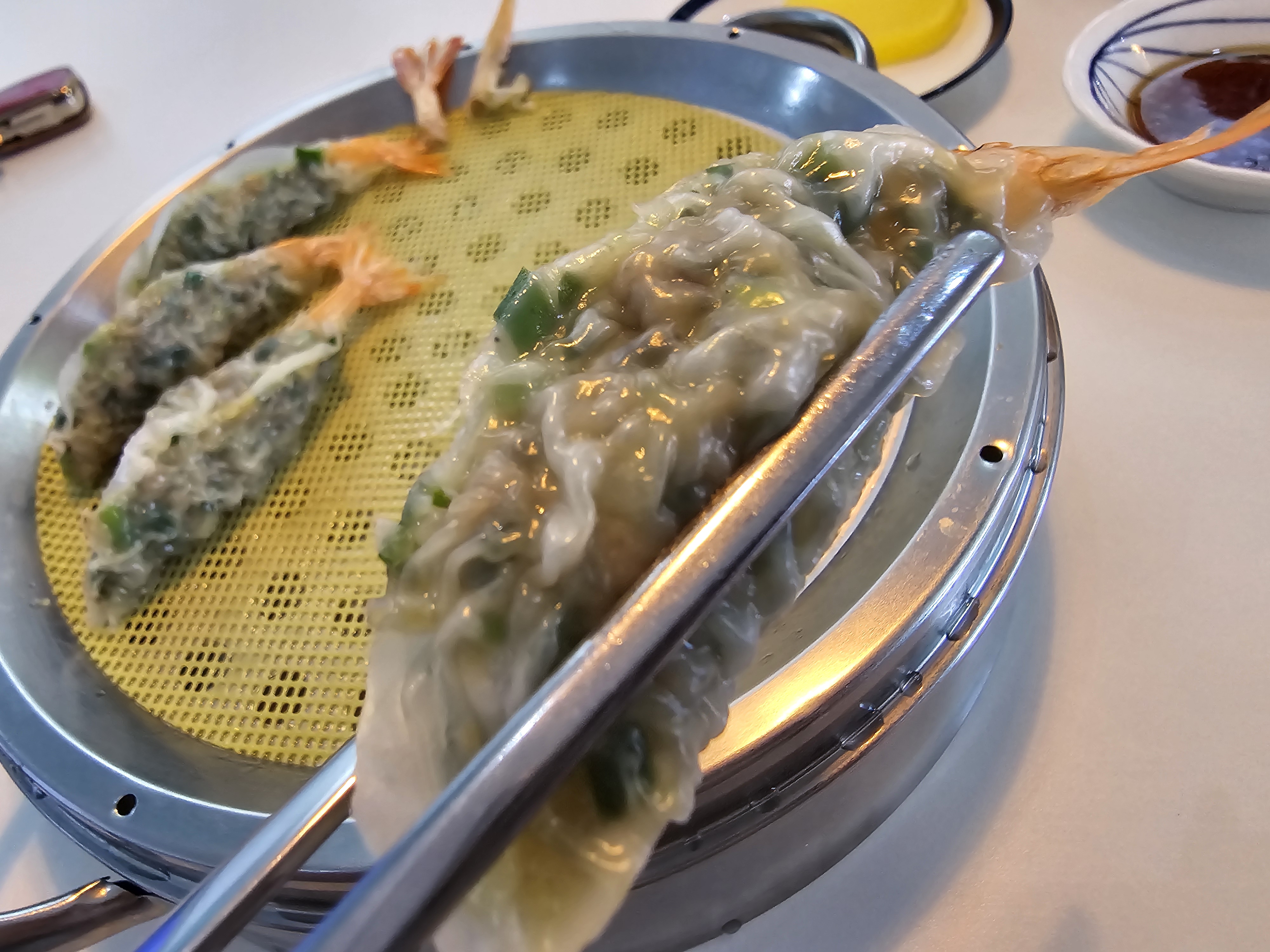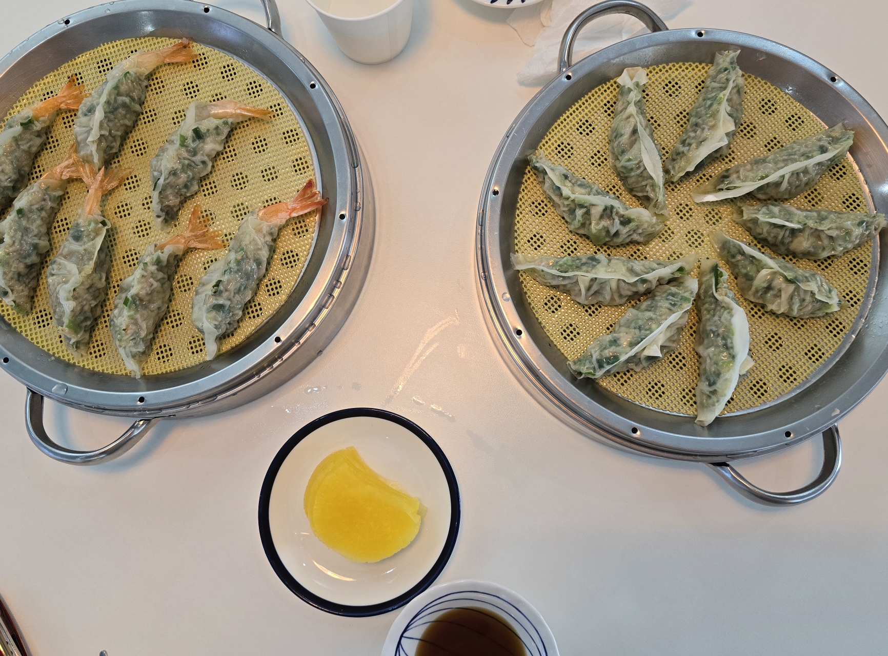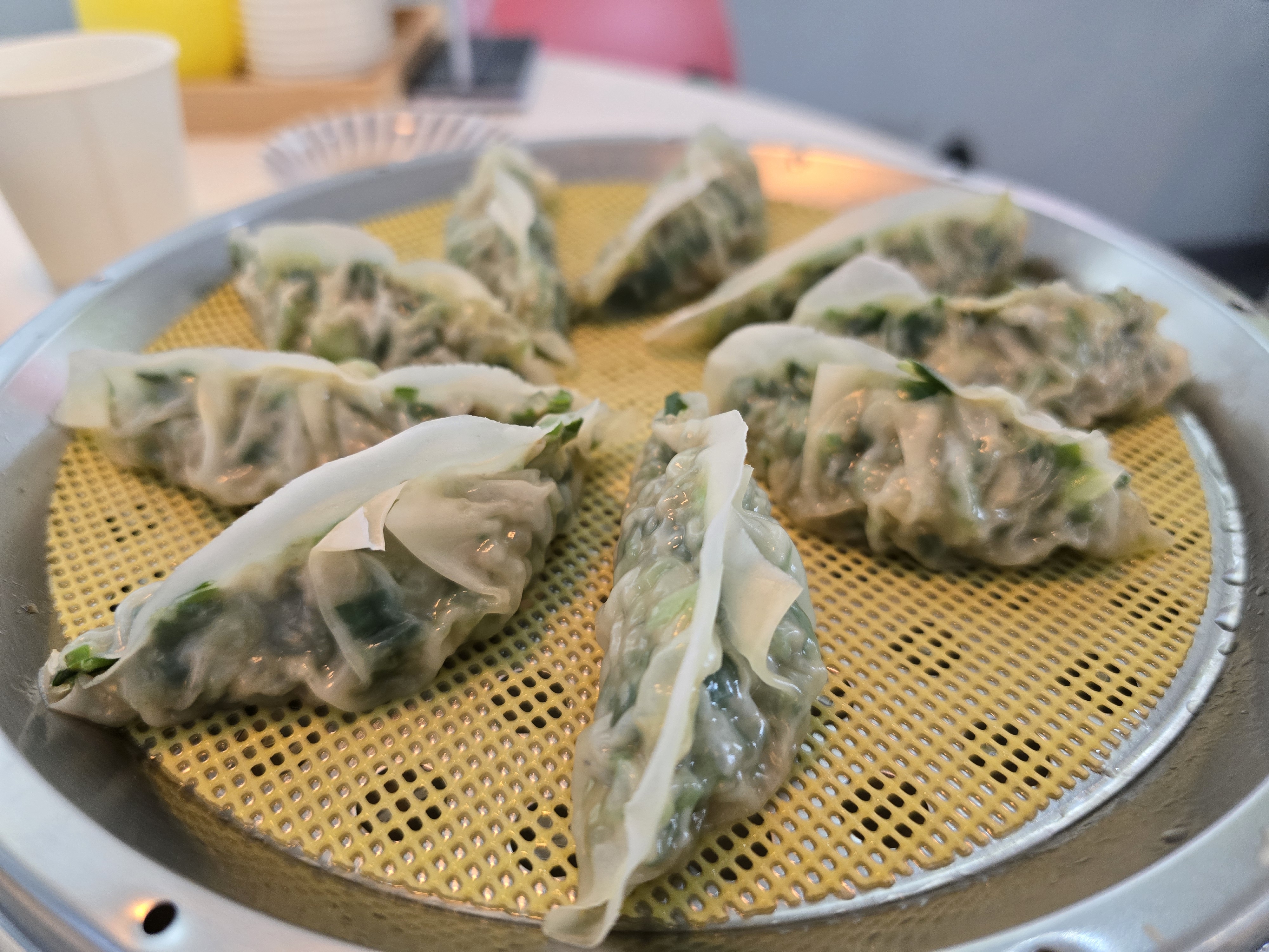 5분 정도 기다리니 김이 폴폴 나는 얇은피만두 새우만두 고추만두가 나왔다. 너무 뜨겁지 않고 먹기 좋은 온도로 나와주시니 고마을 따름이다. 새우만두는 보기만 해도 왠지모를 므훗함을 자아내게 만든다.