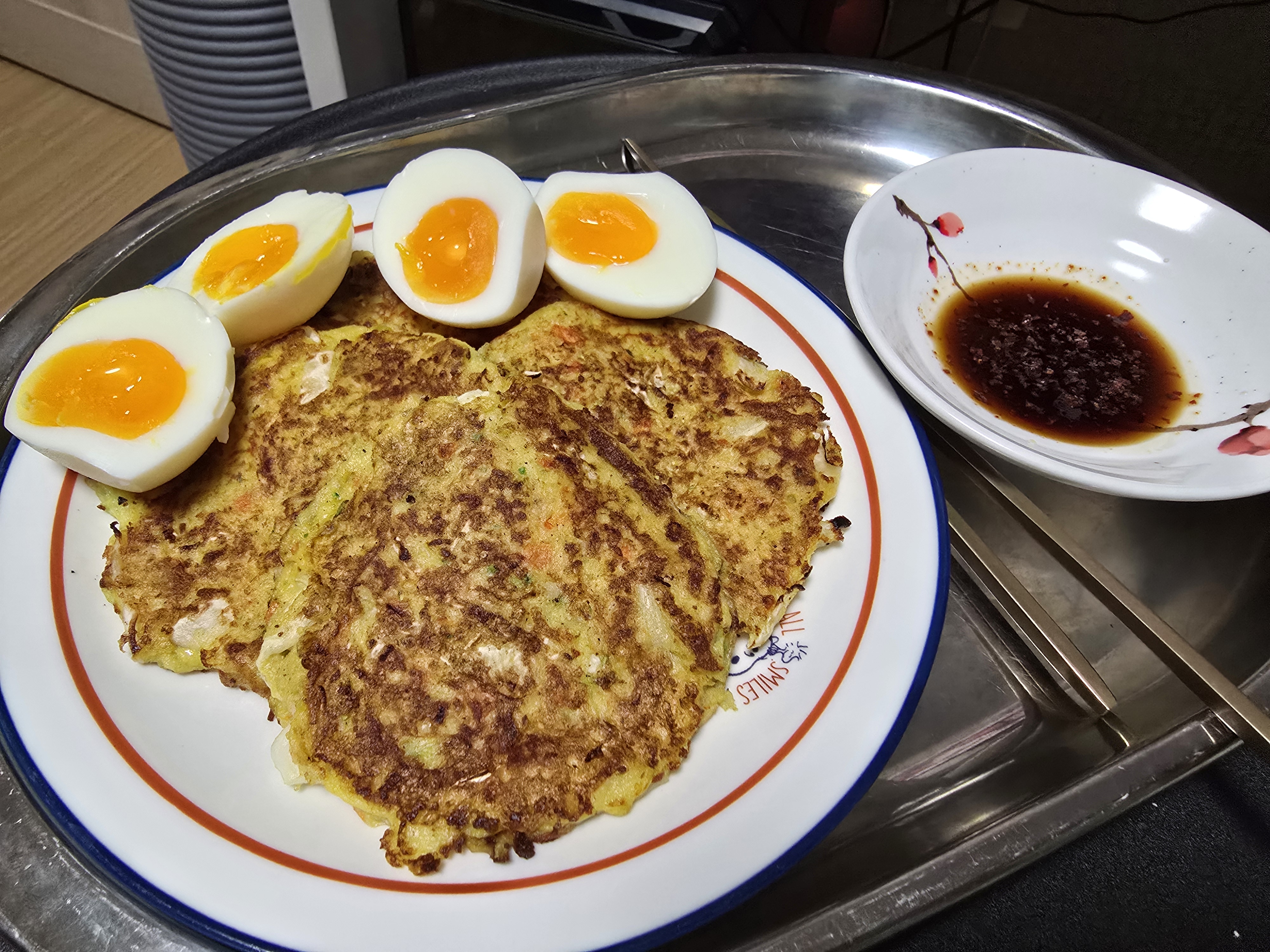 정성스레 부쳐준 양배추전과 삶은 계란 2개가 모잘라보였던가, 우유에서 유당 걸러 내 만들어놓은 견과류 한가득 그릭요거트를 추가로 내어줬다.