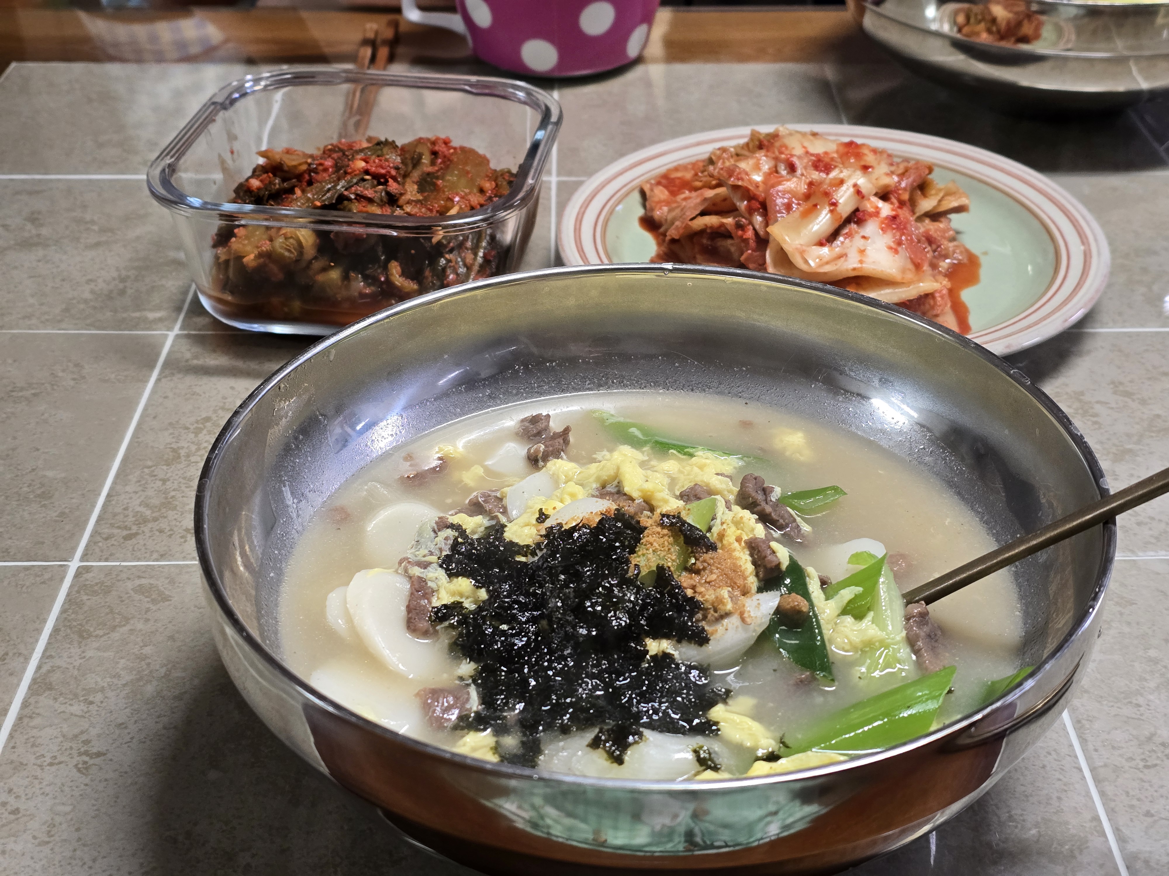 부부일심동체인지 간만에 아주 맛있는 떡국을 끓여 놓은 집사람,