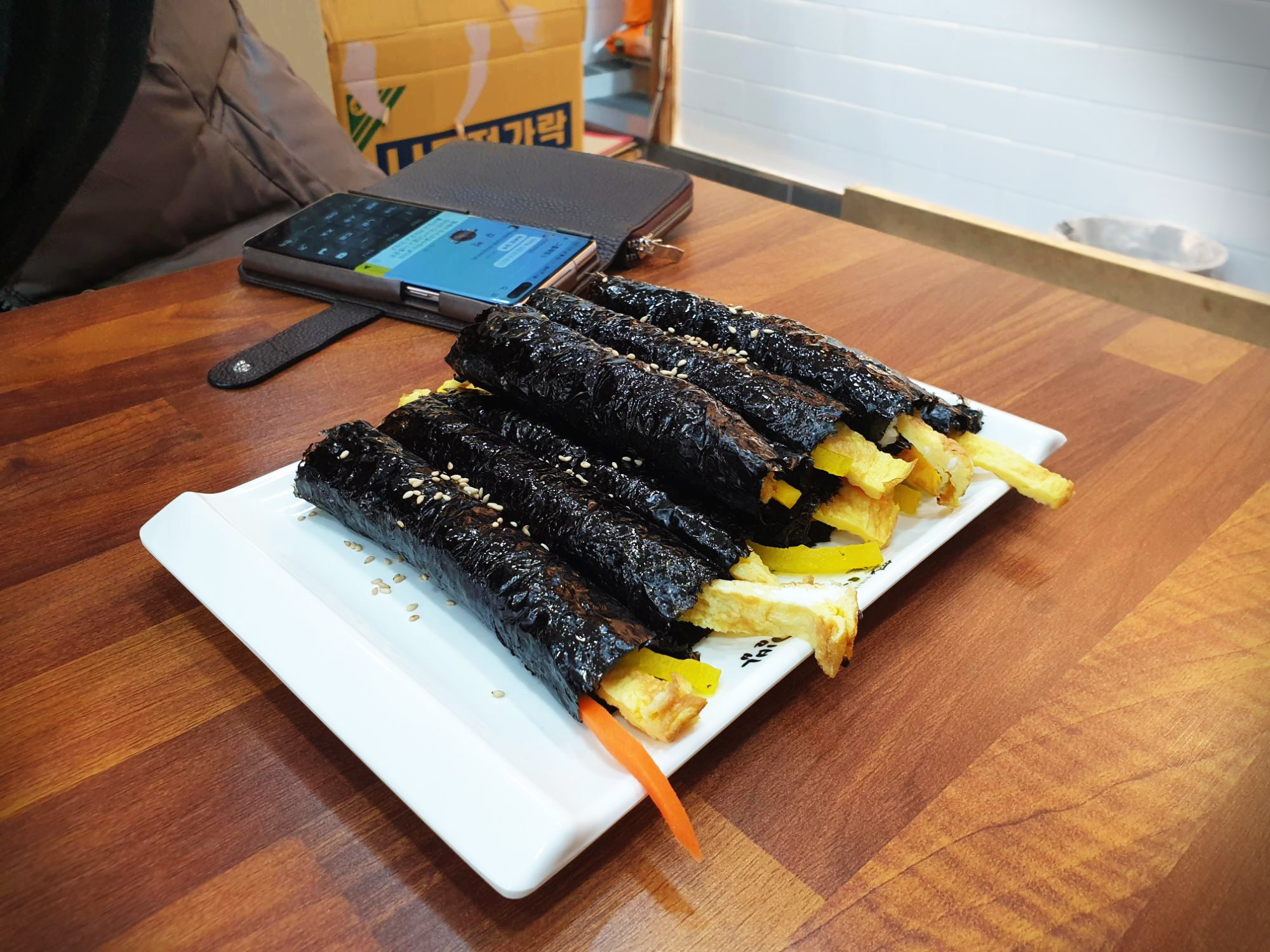 김밥 크기는 집사람 갤럭시 s10과 좀 비슷? 하기도 하다.